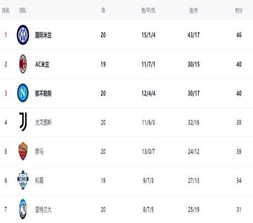 意甲最新积分战报国米8轮不败6分优势领跑那不勒斯追上AC米兰